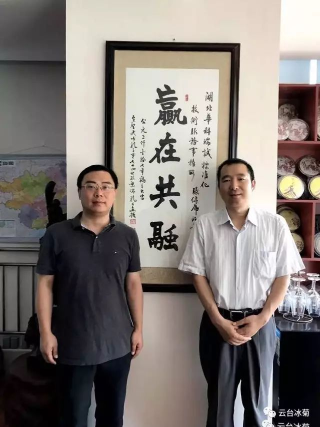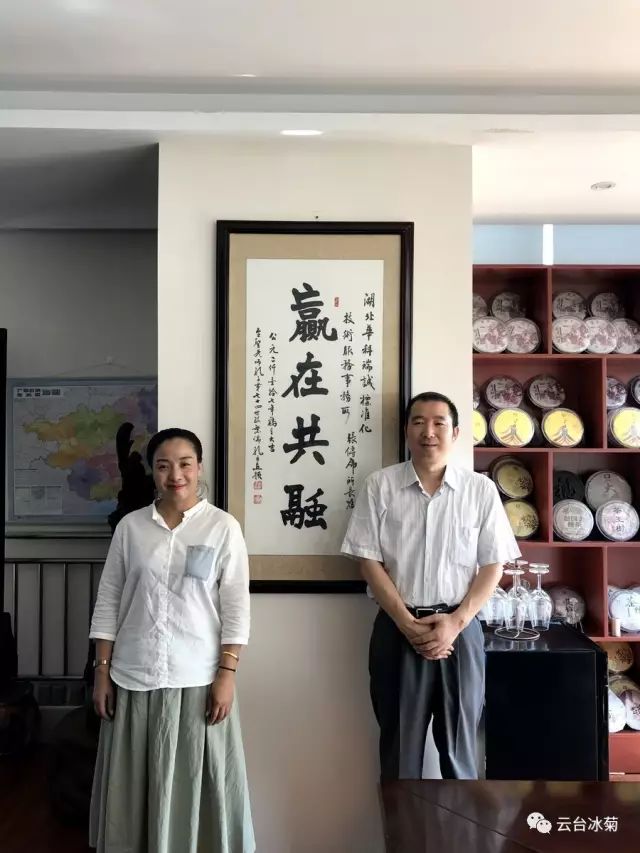 湖北焦作商會張傳虎會長(圖左)與云臺冰菊崔愛敏總經(jīng)理(圖右)共商云臺冰菊發(fā)展宏圖
